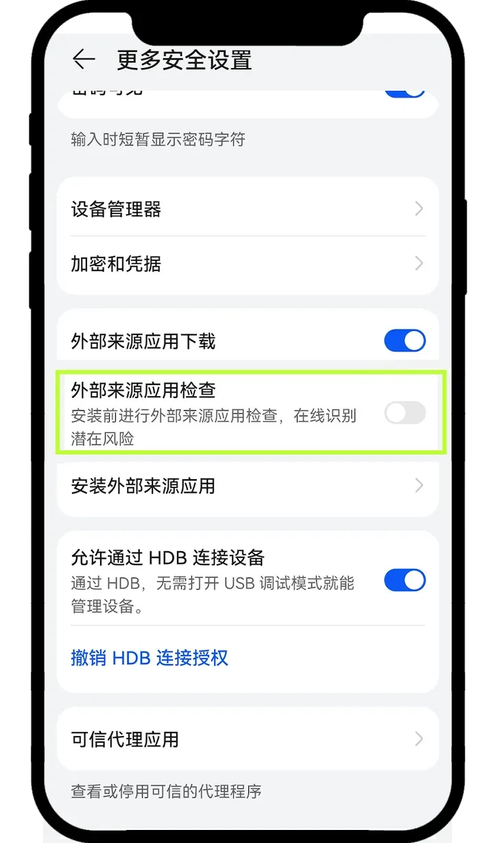 设置 -> 安全 -> 更多安全设置 -> 关闭【外部来源应用检查】。